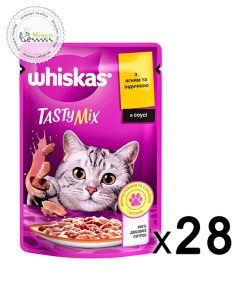 پوچ ویسکاس میکس بره و بوقلمون در سس گراوی +1 (بسته 28 عددی )(85 گرمی) | Whiskas Pouch Mix Lamb And Turkey In Gravy +1 (85 Grams)