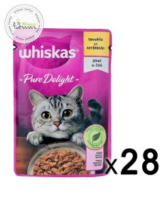 پوچ ویسکاس گوشت مرغ در ژلاتین مخصوص گربه+1 پوردیلایت(85گرمی) (بسته 28 عددی) | Whiskas Pouch Pure Delight In Jelly85gr+1