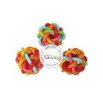 اسباب بازی حیوانات مدل توپ رنگین کمانی، یک دنیای شاد و پرنشاط را برای سگ و گربه شما به ارمغان می‌آورد. این توپ از جنس لاتکس باکیفیت و بادوام ساخته شده است و به شکل حلقه‌های در هم تابیده شده با رنگ‌های جذاب و شاد است. در میانه این توپ، یک زنگوله کوچک قرار دارد که هیجان و سرگرمی را برای حیوان شما دوچندان می‌کند.