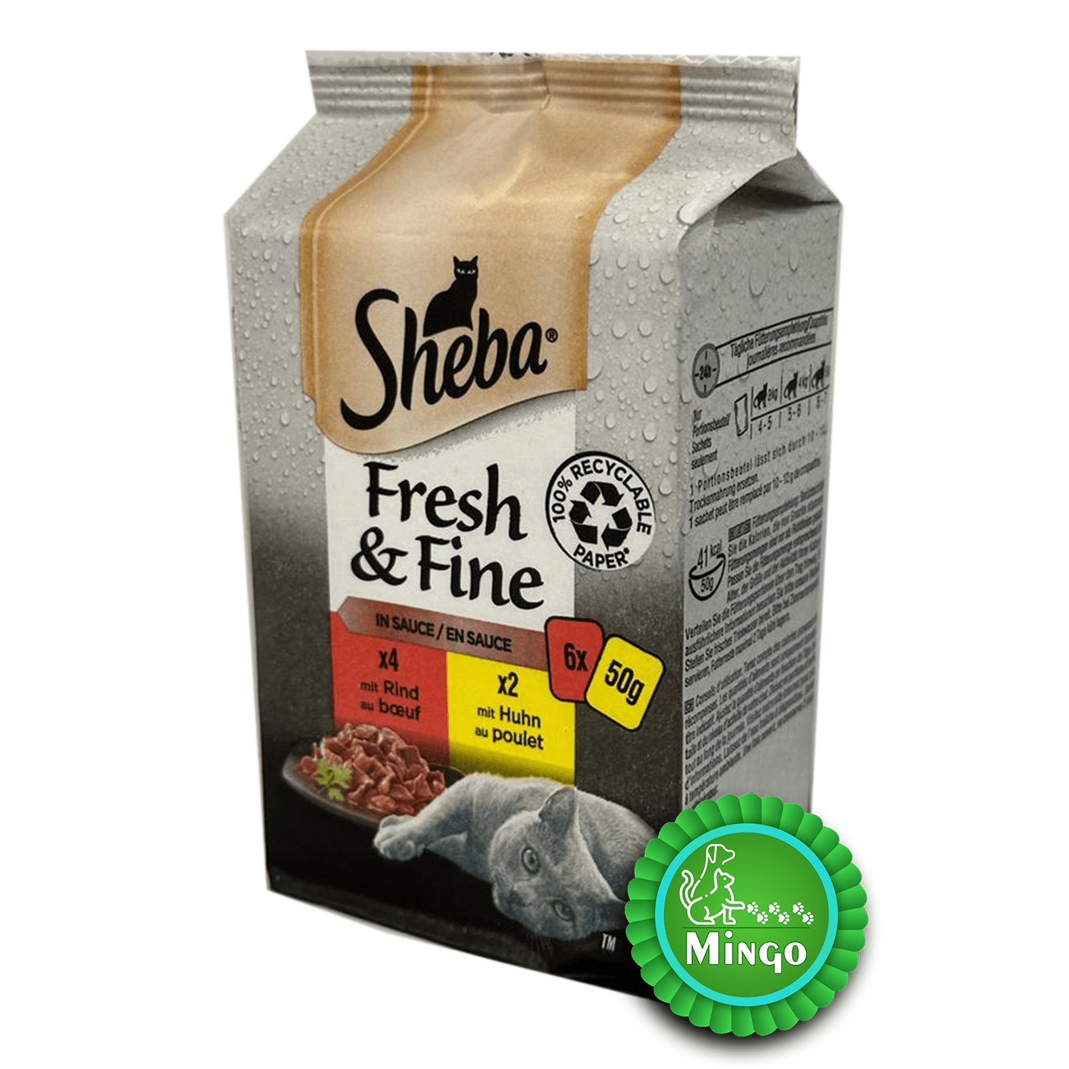 پوچ شبا مالتی پک گوشت گاو و مرغ در سس +1 سری Fresh & Fine (6×50 gr)
