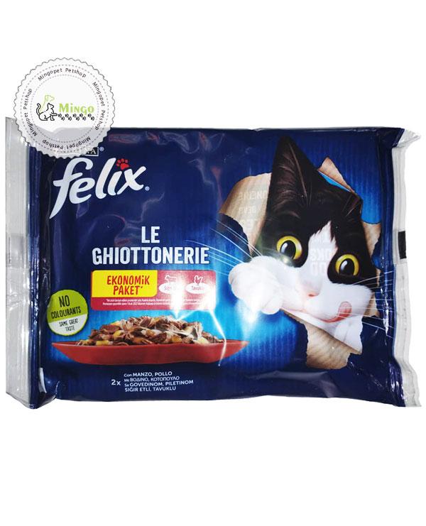 این محصول حاوی دو عدد پوچ با گوشت مرغ و دو عدد پوچ با گوشت گاو می باشد. در این محصول برش های نازک و ظریف گوشت در سس ژلاتین برای گربه های سخت پسند طراحی گردیده است و معمولا کمتر گربه ای هست که در برابر این غذا مقاومت نماید.