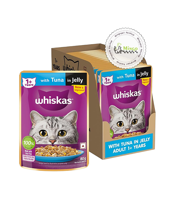 پوچ ویسکاس تن ماهی در ژلاتین +1 (بسته 28 عددی-28*85گرمی) | Whiskas Pouch Tuna In Fish In Jelly +1