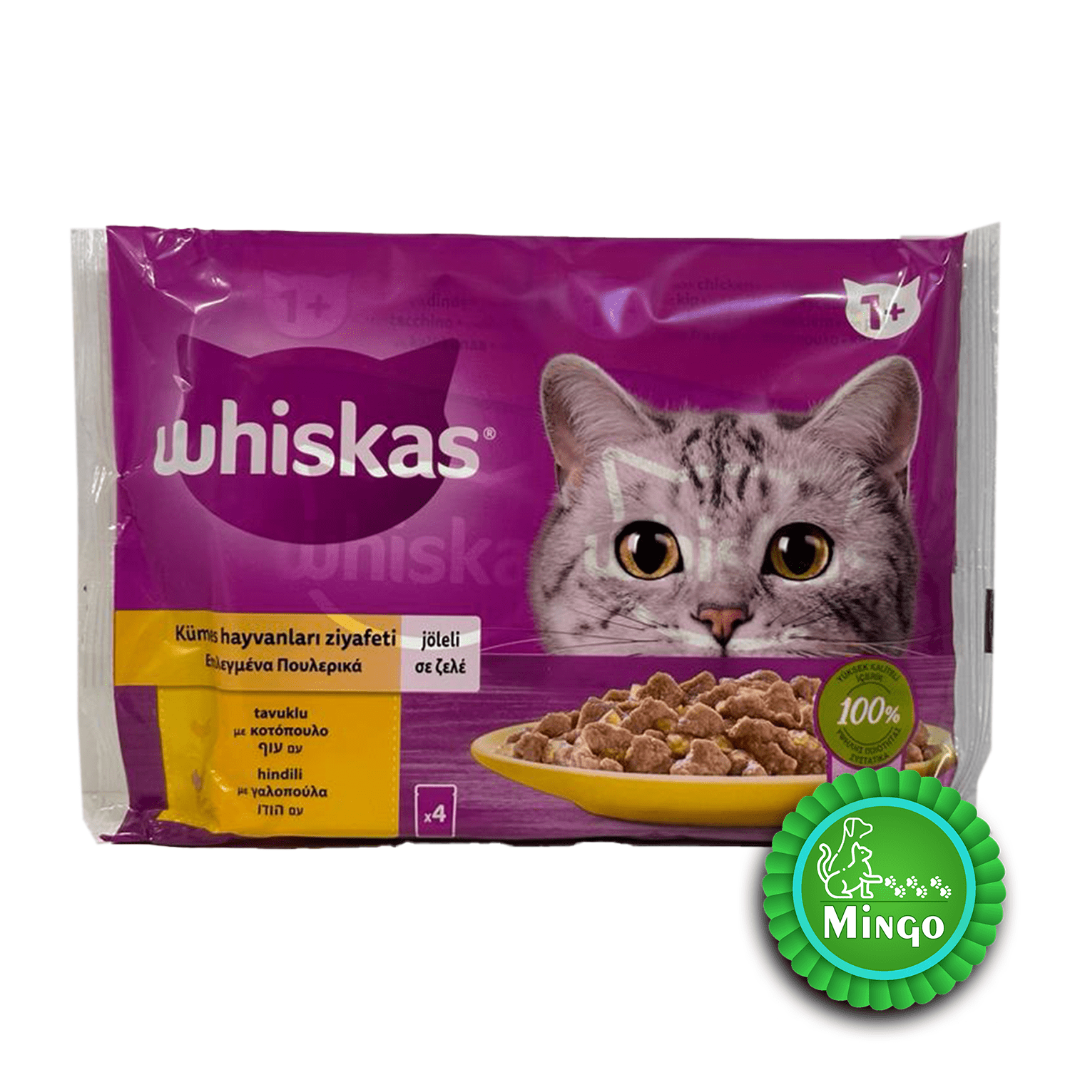 پوچ ویسکاس مالتی پک گوشت مرغ و بوقلمون در ژلاتین +1(gr85x4) |Whiskas Pouch Multipack Chicken&Turkey Selection