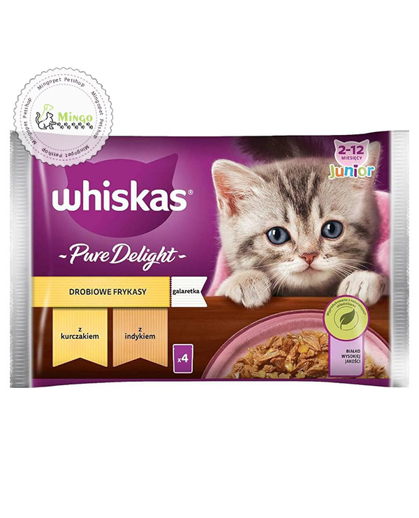 پوچ مالتی پک ویسکاس مخصوص بچه گربه، حاوی 2 بسته 85 گرمی با گوشت مرغ و 2 بسته 85 گرمی با گوشت بوقلمون می باشد. تنوع طعم در این محصول از دیگر جذابیتهای سری پیور دیلایت می باشد.