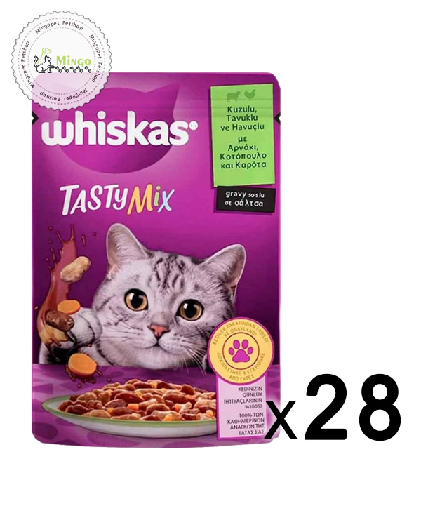 پوچ ویسکاس میکس گوشت بره و مرغ و هویج در سس گراوی (85گرمی) (بسته 28 عددی) | Whiskas Pouch Mix Lamb & Chicken With Carrot In Gravy (85 Grams)