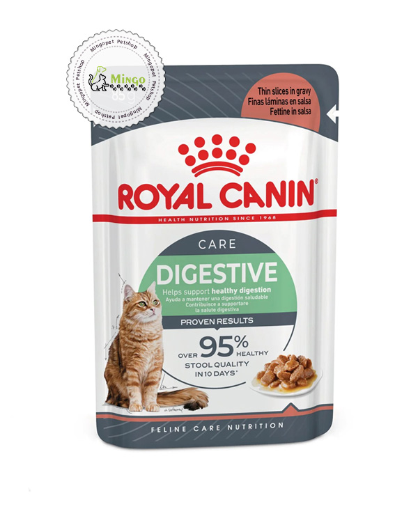 پوچ گربه زود هضم یا Digestive Wet دایجستیو وت رویال کنین برای گربه های بالغ 1 تا 7 ساله با دستگاه گوارش حساس تولید شده است.