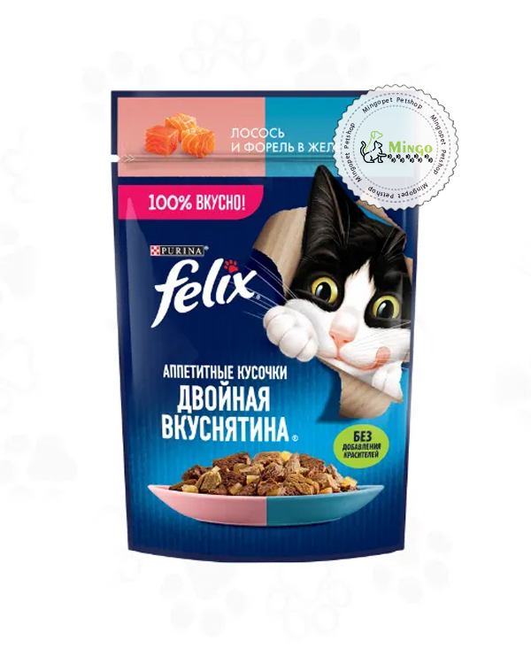 پوچ گربه فلیکس (Felix Purina) با طعم قزلآلا و سالمون در ژله – 75 گرم