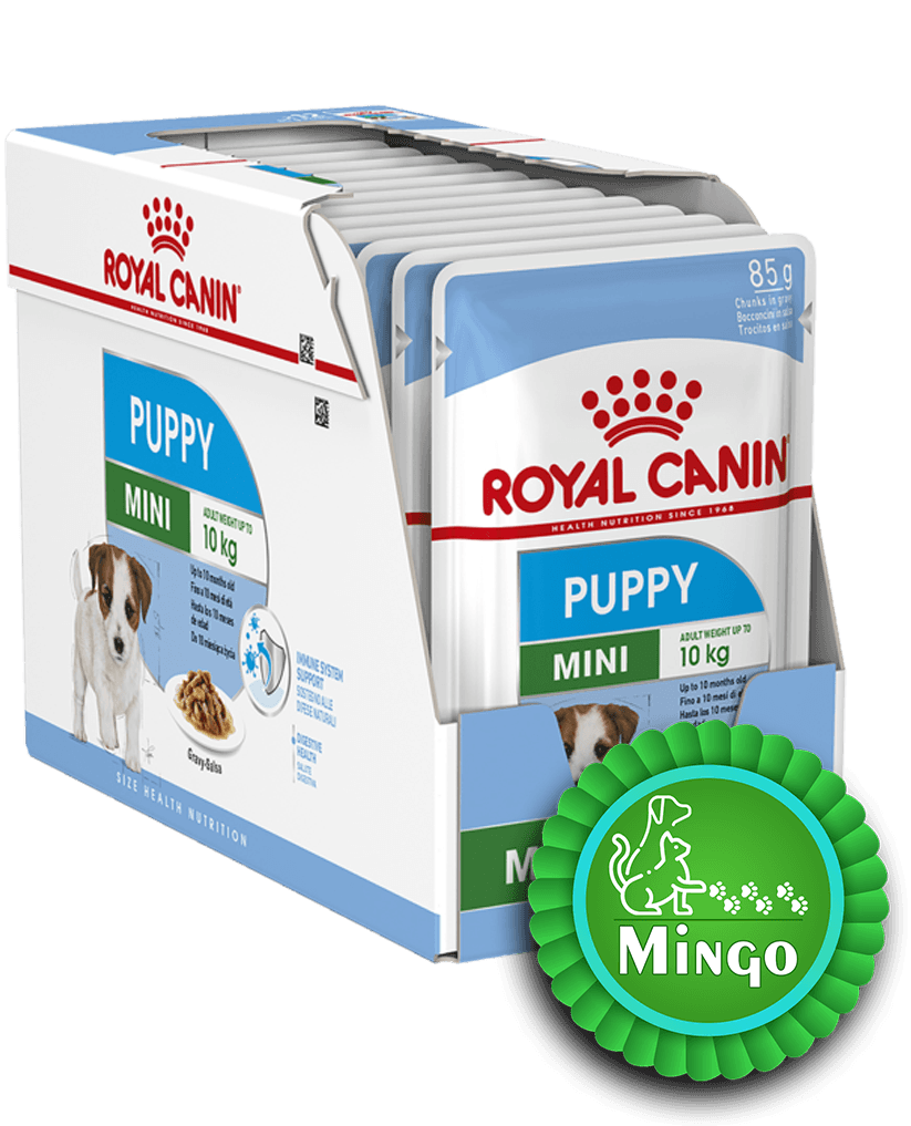 پوچ توله سگ کوچک یا Mini Puppy Wet مینی پاپی وت رویال کنین مخصوص توله های زیر 10 ماه است که وزن بالغ نژاد آن ها بین 1 تا 10 کیلوگرم باشد.
