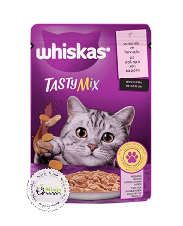 پوچ ویسکاس میکس سالمون و هویج در سس گراوی +1 (85گرمی) | Whiskas Pouch Mix Salmon And Carrot In +1 Gravy (85 Grams)