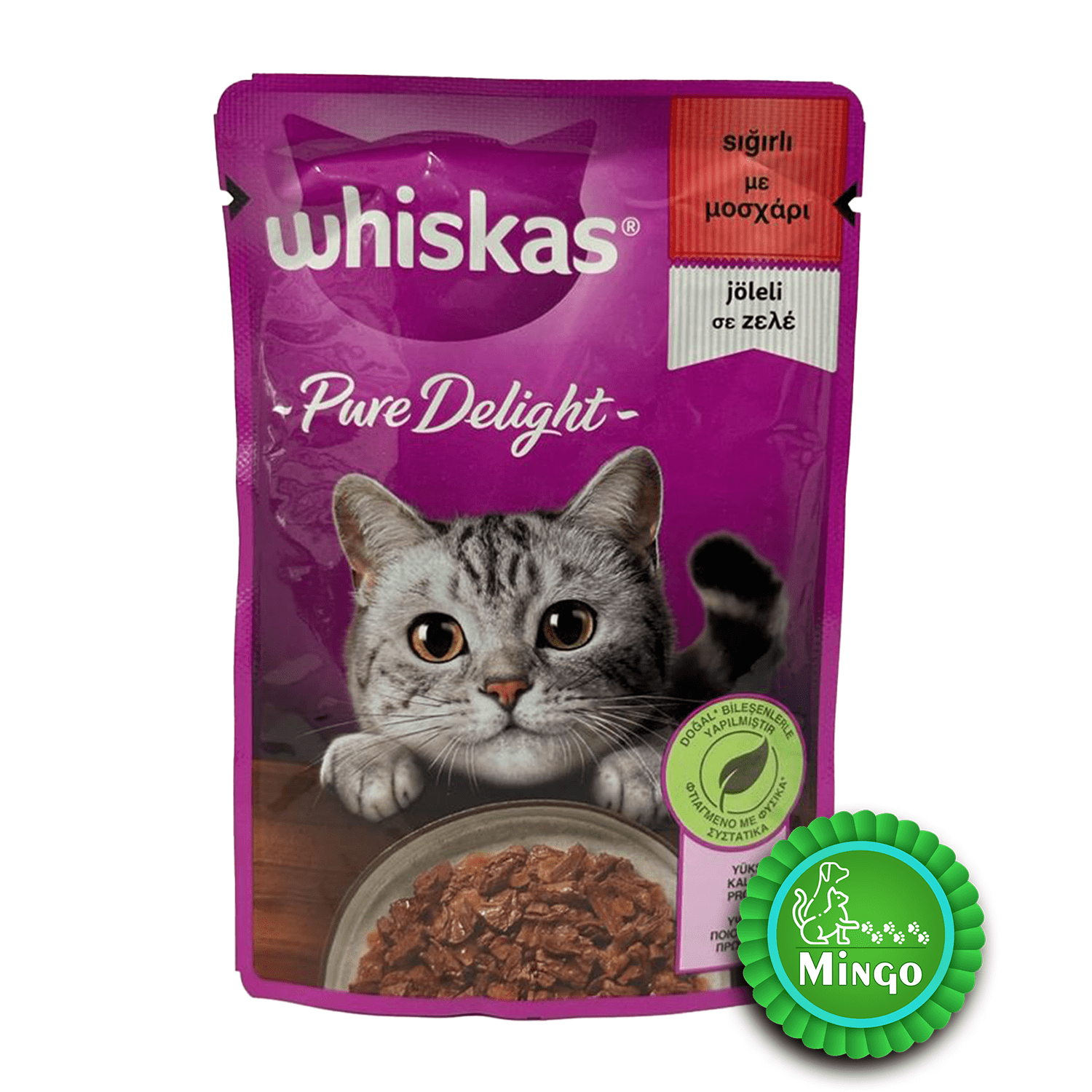 پوچ ویسکاس گوشت گاو در ژلاتین +1 پوردیلایت(85گرمی) |Whiskas Pouch Pure Delight Beef In Jelly+ 1(85 grams)