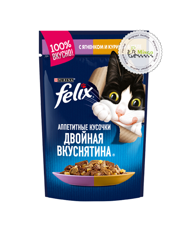 پوچ گربه فلیکس با طعم مرغ و بره در ژله – Felix Chicken & Lamb In Jelly (وزن 75 گرم)