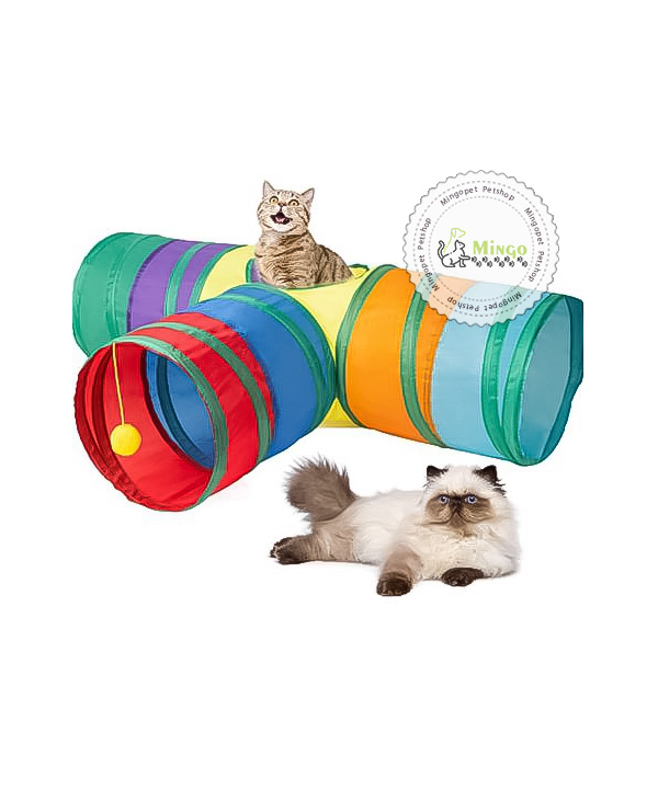 - تونلهای دارای اسباب بازی: برخی از تونلها دارای اسباب بازیهای آویزان یا توپهای کوچک در داخل یا بیرون تونل هستند که جذابیت بیشتری برای گربه ایجاد میکنند.